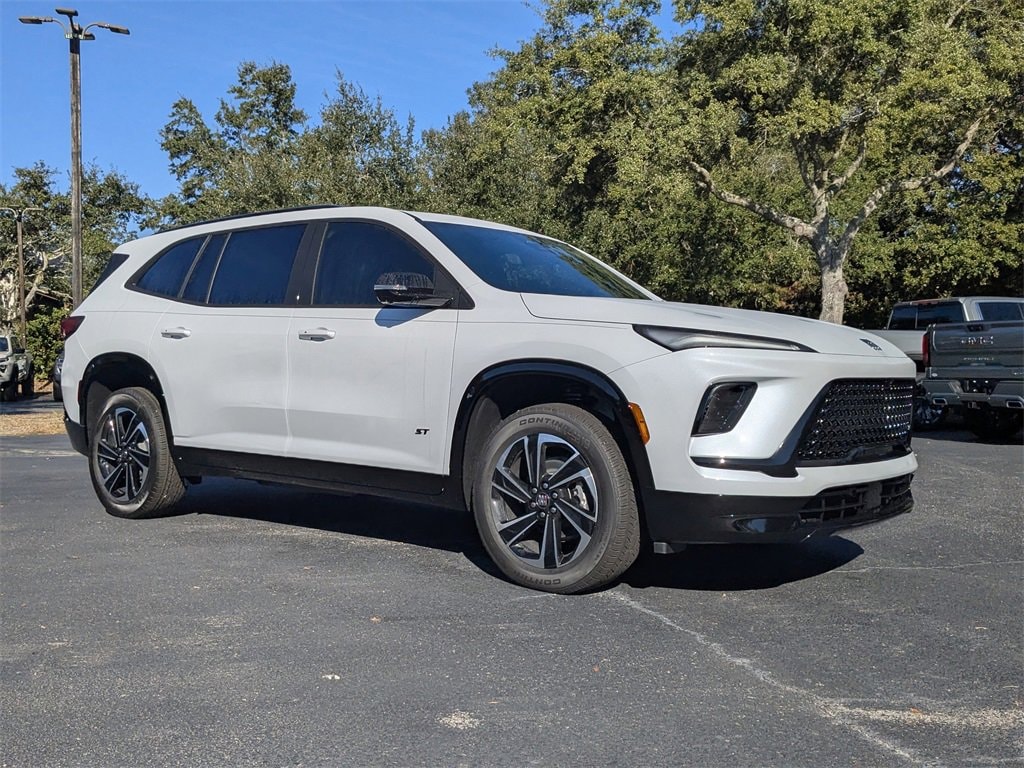 Power Package (110-Volt Power Outlet, 2nd Row 1-Touch Flat Folding Seat, 3rd Row 60/40 Power Split-Folding Bench Seat, Head-Up Display, Heated Wiper Park, Inside Rearview Auo-Dimming Rear Camera Mirror, Memory Settings, and Universal Home Remote), FWD, 12 Speakers, 3 Years SiriusXM, 3rd row seats: split-bench, 4-Wheel Disc Brakes, ABS brakes, Air Conditioning, Alloy wheels, AM/FM radio: SiriusXM with 360L, Apple CarPlay/Android Auto, Auto High-beam Headlights, Auto-dimming door mirrors, Auto-dimming Rear-View mirror, Automatic temperature control, Bose Premium 12-Speaker Audio System with Subwoofer, Brake assist, Bumpers: body-color, Compass, Delay-off headlights, Driver 4-Way Power Lumbar Seat Adjuster, Driver 8-Way Power Seat Adjuster, Driver door bin, Driver vanity mirror, Dual front impact airbags, Dual front side impact airbags, Electronic Stability Control, Emergency communication system: OnStar and Buick connected services capable, Four wheel independent suspension, Front anti-roll bar, Front Bucket Seats, Front Center Armrest, Front dual zone A/C, Front Passenger 4-Way Power Lumbar Seat Adjuster, Front Passenger 6-Way Power Seat Adjuster, Front reading lights, Fully automatic headlights, Heated door mirrors, Heated Driver and Front Passenger Seats, Heated front seats, Heated steering wheel, Illuminated entry, Leather steering wheel, Low tire pressure warning, Navigation System, Occupant sensing airbag, Outside temperature display, Overhead airbag, Overhead console, Panic alarm, Passenger door bin, Passenger vanity mirror, Perforated Leatherette Seat Trim, Power door mirrors, Power driver seat, Power Liftgate, Power Panoramic Sunroof with Sunshade, Power passenger seat, Power steering, Power windows, Premium audio system: Buick Infotainment System, Radio data system, Radio: Infotainment Center, Rear air conditioning, Rear anti-roll bar, Rear reading lights, Rear side impact airbag, Rear window defroster, Rear window wiper, Remote keyless entry, Security system, SiriusXM with 360L Trial Subscription, Speed control, Speed-sensing steering, Spoiler, Sport steering wheel, Steering wheel mounted audio controls, Tachometer, Telescoping steering wheel, Tilt steering wheel, Traction control, Trip computer, Turn signal indicator mirrors, Variably intermittent wipers, Voltmeter, Wheels: 20 Alloy with High Gloss Black and Machine Finish, Wireless Apple CarPlay, and Wireless Google Android Auto.