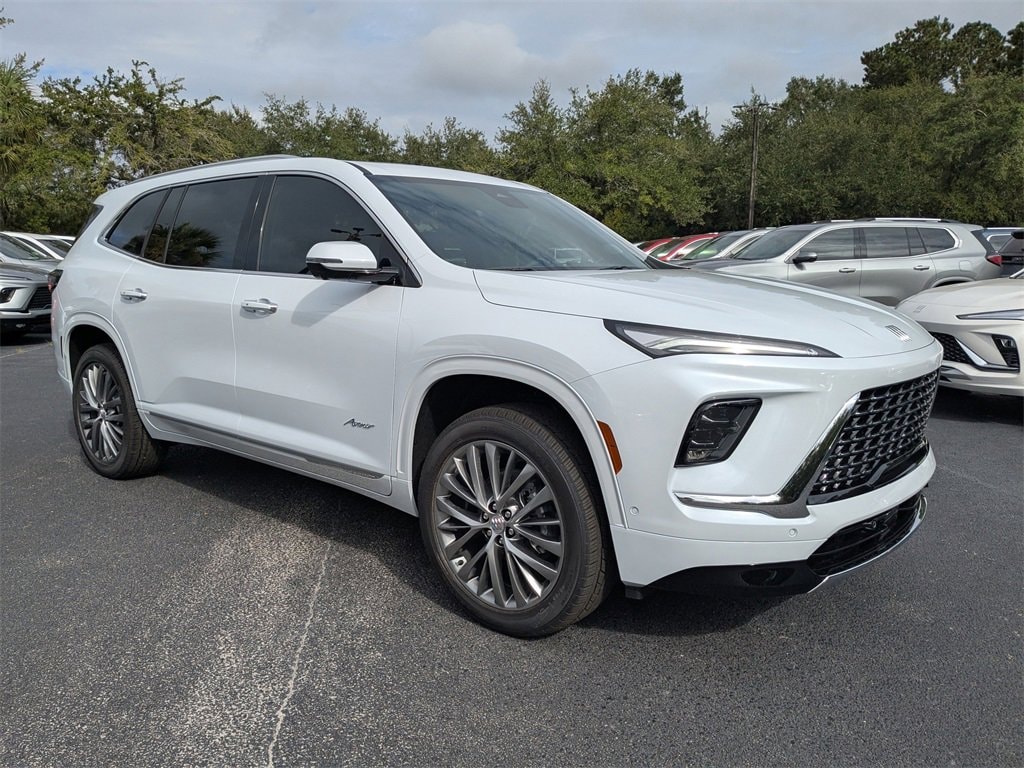 Preferred Equipment Group 1SP, Super Cruise Package (Driver Attention Assist, Enhanced Automatic Parking Assist, and Super Cruise), FWD, 16 Speakers, 3rd row seats: split-bench, 4-Wheel Disc Brakes, ABS brakes, Adaptive suspension, Air Conditioning, Alloy wheels, AM/FM radio: SiriusXM with 360L, Apple CarPlay/Android Auto, Auto High-beam Headlights, Auto tilt-away steering wheel, Auto-dimming door mirrors, Auto-dimming Rear-View mirror, Automatic temperature control, Bose Performance 16-Speaker Audio System, Brake assist, Bumpers: body-color, Compass, Delay-off headlights, Driver 4-Way Power Lumbar Seat Adjuster, Driver 8-Way Power Seat Adjuster, Driver door bin, Driver Massage Control w/4-Way Power Lumbar, Driver vanity mirror, Dual front impact airbags, Dual front side impact airbags, Electronic Stability Control, Emergency communication system: OnStar and Buick connected services capable, Four wheel independent suspension, Fr Passenger Massage Control w/4-Way Power Lumbar, Front anti-roll bar, Front Bucket Seats, Front Center Armrest, Front dual zone A/C, Front Passenger 4-Way Power Lumbar Seat Adjuster, Front Passenger 6-Way Power Seat Adjuster, Front reading lights, Fully automatic headlights, Garage door transmitter, Heads-Up Display, Heated door mirrors, Heated Driver & Front Passenger Seats, Heated front seats, Heated rear seats, Heated steering wheel, Illuminated entry, Leather steering wheel, Low tire pressure warning, Memory seat, Memory Settings, Navigation System, Occupant sensing airbag, Outside temperature display, Overhead airbag, Overhead console, Panic alarm, Passenger door bin, Passenger vanity mirror, Power door mirrors, Power driver seat, Power Liftgate, Power moonroof, Power passenger seat, Power steering, Power windows, Premium audio system: Buick Infotainment System, Quilted & Perforated Leather-Appointed Seat Trim, Radio data system, Radio: Infotainment Center, Rain sensing wipers, Rear air conditioning, Rear anti-roll bar, Rear reading lights, Rear side impact airbag, Rear window defroster, Rear window wiper, Remote keyless entry, Security system, SiriusXM w/360L Trial Subscription, Speed control, Speed-sensing steering, Spoiler, Steering wheel memory, Steering wheel mounted audio controls, Tachometer, Telescoping steering wheel, Tilt steering wheel, Traction control, Trip computer, Turn signal indicator mirrors, Variably intermittent wipers, Ventilated Driver & Front Passenger Seats, Ventilated front seats, Ventilated rear seats, Voltmeter, Wheels: 22 Alloy w/Avenir Pearl Nickel Finish, Wireless Apple CarPlay, and Wireless Google Android Auto.