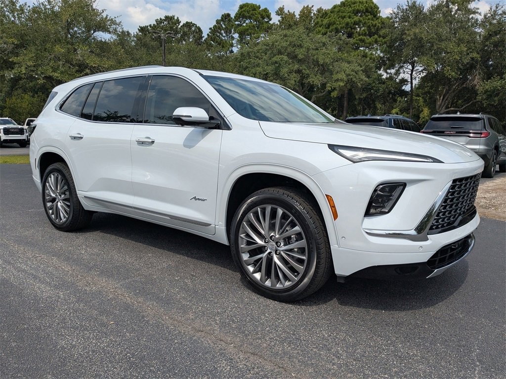 Preferred Equipment Group 1SP, Super Cruise Package (Driver Attention Assist, Enhanced Automatic Parking Assist, and Super Cruise), FWD, 16 Speakers, 3rd row seats: split-bench, 4-Wheel Disc Brakes, ABS brakes, Adaptive suspension, Air Conditioning, Alloy wheels, AM/FM radio: SiriusXM with 360L, Apple CarPlay/Android Auto, Auto High-beam Headlights, Auto tilt-away steering wheel, Auto-dimming door mirrors, Auto-dimming Rear-View mirror, Automatic temperature control, Bose Performance 16-Speaker Audio System, Brake assist, Bumpers: body-color, Compass, Delay-off headlights, Driver 4-Way Power Lumbar Seat Adjuster, Driver 8-Way Power Seat Adjuster, Driver door bin, Driver Massage Control w/4-Way Power Lumbar, Driver vanity mirror, Dual front impact airbags, Dual front side impact airbags, Electronic Stability Control, Emergency communication system: OnStar and Buick connected services capable, Four wheel independent suspension, Fr Passenger Massage Control w/4-Way Power Lumbar, Front anti-roll bar, Front Bucket Seats, Front Center Armrest, Front dual zone A/C, Front Passenger 4-Way Power Lumbar Seat Adjuster, Front Passenger 6-Way Power Seat Adjuster, Front reading lights, Fully automatic headlights, Garage door transmitter, Heads-Up Display, Heated door mirrors, Heated Driver & Front Passenger Seats, Heated front seats, Heated rear seats, Heated steering wheel, Illuminated entry, Leather steering wheel, Low tire pressure warning, Memory seat, Memory Settings, Navigation System, Occupant sensing airbag, Outside temperature display, Overhead airbag, Overhead console, Panic alarm, Passenger door bin, Passenger vanity mirror, Power door mirrors, Power driver seat, Power Liftgate, Power moonroof, Power passenger seat, Power steering, Power windows, Premium audio system: Buick Infotainment System, Quilted & Perforated Leather-Appointed Seat Trim, Radio data system, Radio: Infotainment Center, Rain sensing wipers, Rear air conditioning, Rear anti-roll bar, Rear reading lights, Rear side impact airbag, Rear window defroster, Rear window wiper, Remote keyless entry, Security system, SiriusXM w/360L Trial Subscription, Speed control, Speed-sensing steering, Spoiler, Steering wheel memory, Steering wheel mounted audio controls, Tachometer, Telescoping steering wheel, Tilt steering wheel, Traction control, Trip computer, Turn signal indicator mirrors, Variably intermittent wipers, Ventilated Driver & Front Passenger Seats, Ventilated front seats, Ventilated rear seats, Voltmeter, Wheels: 22 Alloy w/Avenir Pearl Nickel Finish, Wireless Apple CarPlay, and Wireless Google Android Auto.