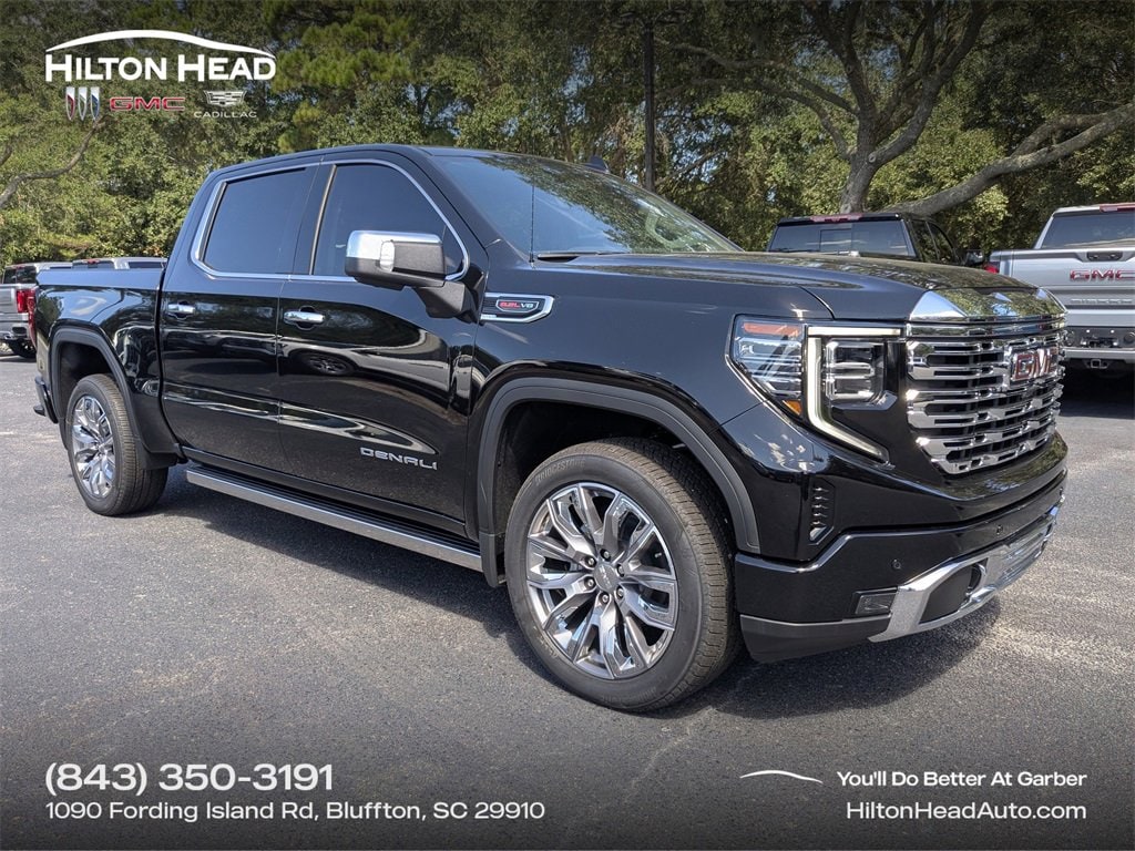Denali Reserve Super Package (GMC MultiPro Power Steps, Power Sunroof, Super Cruise, Super Cruise Wrapped Steering Wheel, Wheel Locks (Set of 4) (LPO), and Wheels: 22 x 9 Painted Aluminum), Preferred Equipment Group 5SA (120-Volt Bed Mounted Power Outlet, 120-Volt Interior Power Outlet, 170 Amp Alternator, 2 Charge/Data USB Ports Inside Center Console, 2 Type-C Charge-Only Rear USB Ports, 2 USB Ports, Auto-Locking Rear Differential, Auxiliary External Transmission Oil Cooler, Bed View Camera, Chrome Header w/Signature Denali Chrome Grille, Chrome Recovery Hooks, Chrome Wheel To Wheel Assist Steps, Color-Keyed Carpeting Floor Covering, Deep-Tinted Glass, Electric Rear-Window Defogger, Floor-Mounted Center Console, Front Rain-Sensing Wipers, HD Surround Vision, Heated 2nd Row Outboard Seats, Heated Driver & Front Outboard Passenger Seating, Heavy-Duty Air Filter, Hill Descent Control, Hitch View, In-Vehicle Trailering System App, Integrated Trailer Brake Controller, Keyless Open & Start, LED Cargo Area Lighting, OnStar Services Capable, Perimeter Lighting, Power Door Locks, Power Front Passenger Windows w/Express Up/Down, Power Front Windows w/Driver Express Up/Down, Power Rake & Telescoping Steering Column, Power Rear Windows w/Express Down, Power Sliding Rear Window w/Rear Defogger, Premium Bose 7-Speaker Sound System, Push Button Start, Rear Cross Traffic Braking, Rear Pedestrian Detection, Rear Wheelhouse Liners, Remote Vehicle Starter System, SiriusXM w/360L Trial Subscription, Spray-On Pickup Bedliner w/GMC Logo, Steering Wheel Audio Controls, Theft Deterrent System (Unauthorized Entry), Trailer Camera Provisions, Trailer Side Blind Zone Alert, Ultrasonic Front & Rear Park Assist, Universal Home Remote, Ventilated Driver & Front Passenger Seats, Wi-Fi Hotspot Capable, and Wireless Charging), Technology Package (Multicolor 15 Diagonal Head-Up Display and Rear Camera Mirror), Trailering Package (Hitch Guidance), 10-Speed Automatic, 4WD, Black Leather, 12-Way Power Driver Seat Adjuster w/Lumbar, 12-Way Power Passenger Seat Adjuster w/Lumbar, 3 Years of OnStar & Connected Services Plan (DISC), 3.23 Rear Axle Ratio, 4-Wheel Disc Brakes, 7 Speakers, ABS brakes, Adaptive suspension, Air Conditioning, Alloy wheels, AM/FM radio: SiriusXM with 360L, Apple CarPlay/Android Auto, Auto High-beam Headlights, Auto-dimming door mirrors, Auto-dimming Rear-View mirror, Automatic temperature control, Brake assist, Buckle to Drive, Bumpers: body-color, Compass, Delay-off headlights, Denali Premium Suspension w/Adaptive Ride Control, Driver door bin, Driver Memory, Driver vanity mirror, Dual Active Exhaust, Dual front impact airbags, Dual front side impact airbags, Electronic Stability Control, Emergency communication system: OnStar, Enhanced Automatic Emergency Braking, Following Distance Indicator, Forge Perforated Leather Seat Trim, Forward Collision Alert, Front anti-roll bar, Front Bucket Seats, Front Center Armrest, Front dual zone A/C, Front fog lights, Front Pedestrian Braking, Front Prem Floor Liners w/Removable Carpet Insert, Front reading lights, Front wheel independent suspension, Fully automatic headlights, Garage door transmitter, Genuine wood console insert, Genuine wood dashboard insert, Genuine wood door panel insert, Heated door mirrors, Heated front seats, Heated rear seats, Heated steering wheel, Illuminated entry, IntelliBeam Automatic High Beam On/Off, Lane Keep Assist w/Lane Departure Warning, Low tire pressure warning, Memory seat, Navigation System, Occupant sensing airbag, Outside temperature display, Overhead airbag, Overhead console, Panic alarm, Passenger door bin, Passenger vanity mirror, Power door mirrors,
