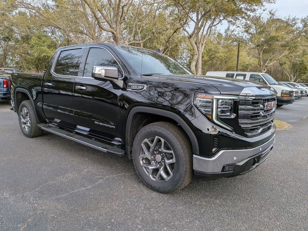 High Capacity Suspension Package, Preferred Equipment Group 4SA (10-Way Power Driver Seat Adjuster with Lumbar, 10-Way Power Passenger Seat Adjuster with Lumbar, 120-Volt Bed Mounted Power Outlet, 120-Volt Interior Power Outlet, 170 Amp Alternator, 2 Charge/Data USB Ports, 2 Type-C Charge-Only Rear USB Ports, 6-Speaker Audio System Feature, Auto-Locking Rear Differential, Auxiliary External Transmission Oil Cooler, Chrome Header and Chrome Grille Insert Bars, Color-Keyed Carpeting Floor Covering, Deep-Tinted Glass, Driver Memory, Electric Rear-Window Defogger, Front 40/20/40 Split-Bench Seat, Front Frame-Mounted Black Recovery Hooks, Front Rain-Sensing Wipers, HD Rear Vision Camera, Heated Driver and Front Outboard Passenger Seating, Integrated Trailer Brake Controller, Keyless Open and Start, LED Cargo Area Lighting, Manual Tilt-Wheel and Telescoping Steering Column, OnStar Services Capable, Perimeter Lighting, Power Door Locks, Power Front Passenger Windows with Express Up/Down, Power Front Windows with Driver Express Up/Down, Power Rear Windows with Express Down, Push Button Start, Rear Wheelhouse Liners, Remote Vehicle Starter System, SiriusXM with 360L Trial Subscription, Steering Wheel Audio Controls, Theft Deterrent System (unauthorized Entry), Wheels: 18 x 8.5 6-Spoke Machined Aluminum, and Wi-Fi Hotspot Capable), ProGrade Trailering System (Hitch View and in-Vehicle Trailering System App), Sierra Safety Plus Package (HD Surround Vision, Rear Cross Traffic Braking, Rear Pedestrian Detection, Safety Alert Seat, Trailer Camera Provisions, Trailer Side Blind Zone Alert, and Ultrasonic Front and Rear Park Assist), SLT Convenience Package (2 Charge/Data USB Ports Inside Center Console, Electronic Precision Shift, Floor-Mounted Center Console, Front Bucket Seats, Power Rake and Telescoping Steering Column, Premium Bose 7-Speaker Sound System, Ventilated Driver and Front Passenger Seats, and Wireless Charging), SLT Preferred Package (Adaptive Cruise Control, Heated 2nd Row Outboard Seats, Power Sliding Rear Window with Rear Defogger, and Universal Home Remote), SLT Premium Plus Package (Chrome Wheel to Wheel Assist Steps and Spray-on Pickup Bedliner with GMC Logo), Standard Suspension Package, Trailering Package (Hitch Guidance), X31 Off-Road Package (Dual Exhaust System, Heavy-Duty Air Filter, Hill Descent Control, Off-Road Suspension, and X31 Hard Badge), 10-Speed Automatic, 4WD, Black Leather, 20 Polished Aluminum Wheels, 3 Years SiriusXM, 3.23 Rear Axle Ratio, 4-Wheel Disc Brakes, 6 Speakers, ABS brakes, Air Conditioning, Alloy wheels, AM/FM radio: SiriusXM with 360L, Apple CarPlay/Android Auto, Auto High-beam Headlights, Auto-dimming door mirrors, Auto-dimming Rear-View mirror, Automatic Emergency Braking, Automatic temperature control, Brake assist, Buckle to Drive, Bumpers: chrome, Compass, Delay-off headlights, Driver door bin, Driver vanity mirror, Dual front impact airbags, Dual front side impact airbags, Electronic Stability Control, Emergency communication system: OnStar, Following Distance Indicator, Forward Collision Alert, Front anti-roll bar, Front Center Armrest w/Storage, Front dual zone A/C, Front fog lights, Front Pedestrian Braking, Front reading lights, Front wheel independent suspension, Fully automatic headlights, Heated door mirrors, Heated front seats, Heated steering wheel, Illuminated entry, IntelliBeam Automatic High Beam on/Off, Lane Keep Assist with Lane Departure Warning, Low tire pressure warning, Memory seat, Navigation System, Occupant sensing airbag, Outside temperature display, Overhead airbag, Overhead console, Panic alarm, Passenger door bin, Passenger vanity mirror, Perforated Leather-Appointed Front Outboard Seat Trim, Power door mirrors,