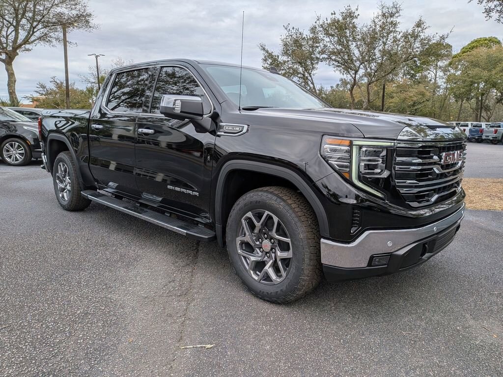High Capacity Suspension Package, Preferred Equipment Group 4SA (10-Way Power Driver Seat Adjuster with Lumbar, 10-Way Power Passenger Seat Adjuster with Lumbar, 120-Volt Bed Mounted Power Outlet, 120-Volt Interior Power Outlet, 170 Amp Alternator, 2 Charge/Data USB Ports, 2 Type-C Charge-Only Rear USB Ports, 6-Speaker Audio System Feature, Auto-Locking Rear Differential, Auxiliary External Transmission Oil Cooler, Chrome Header and Chrome Grille Insert Bars, Color-Keyed Carpeting Floor Covering, Deep-Tinted Glass, Driver Memory, Electric Rear-Window Defogger, Front 40/20/40 Split-Bench Seat, Front Frame-Mounted Black Recovery Hooks, Front Rain-Sensing Wipers, HD Rear Vision Camera, Heated Driver and Front Outboard Passenger Seating, Integrated Trailer Brake Controller, Keyless Open and Start, LED Cargo Area Lighting, Manual Tilt-Wheel and Telescoping Steering Column, OnStar Services Capable, Perimeter Lighting, Power Door Locks, Power Front Passenger Windows with Express Up/Down, Power Front Windows with Driver Express Up/Down, Power Rear Windows with Express Down, Push Button Start, Rear Wheelhouse Liners, Remote Vehicle Starter System, SiriusXM with 360L Trial Subscription, Steering Wheel Audio Controls, Theft Deterrent System (unauthorized Entry), Wheels: 18 x 8.5 6-Spoke Machined Aluminum, and Wi-Fi Hotspot Capable), ProGrade Trailering System (Hitch View and in-Vehicle Trailering System App), Sierra Safety Plus Package (HD Surround Vision, Rear Cross Traffic Braking, Rear Pedestrian Detection, Safety Alert Seat, Trailer Camera Provisions, Trailer Side Blind Zone Alert, and Ultrasonic Front and Rear Park Assist), SLT Convenience Package (2 Charge/Data USB Ports Inside Center Console, Electronic Precision Shift, Floor-Mounted Center Console, Front Bucket Seats, Power Rake and Telescoping Steering Column, Premium Bose 7-Speaker Sound System, Ventilated Driver and Front Passenger Seats, and Wireless Charging), SLT Preferred Package (Adaptive Cruise Control, Heated 2nd Row Outboard Seats, Power Sliding Rear Window with Rear Defogger, and Universal Home Remote), SLT Premium Plus Package (Chrome Wheel to Wheel Assist Steps and Spray-on Pickup Bedliner with GMC Logo), Standard Suspension Package, Trailering Package (Hitch Guidance), X31 Off-Road Package (Dual Exhaust System, Heavy-Duty Air Filter, Hill Descent Control, Off-Road Suspension, and X31 Hard Badge), 10-Speed Automatic, 4WD, Black Leather, 20 Polished Aluminum Wheels, 3 Years SiriusXM, 3.23 Rear Axle Ratio, 4-Wheel Disc Brakes, 6 Speakers, ABS brakes, Air Conditioning, Alloy wheels, AM/FM radio: SiriusXM with 360L, Apple CarPlay/Android Auto, Auto High-beam Headlights, Auto-dimming door mirrors, Auto-dimming Rear-View mirror, Automatic Emergency Braking, Automatic temperature control, Brake assist, Buckle to Drive, Bumpers: chrome, Compass, Delay-off headlights, Driver door bin, Driver vanity mirror, Dual front impact airbags, Dual front side impact airbags, Electronic Stability Control, Emergency communication system: OnStar, Following Distance Indicator, Forward Collision Alert, Front anti-roll bar, Front Center Armrest w/Storage, Front dual zone A/C, Front fog lights, Front Pedestrian Braking, Front reading lights, Front wheel independent suspension, Fully automatic headlights, Heated door mirrors, Heated front seats, Heated steering wheel, Illuminated entry, IntelliBeam Automatic High Beam on/Off, Lane Keep Assist with Lane Departure Warning, Low tire pressure warning, Memory seat, Navigation System, Occupant sensing airbag, Outside temperature display, Overhead airbag, Overhead c