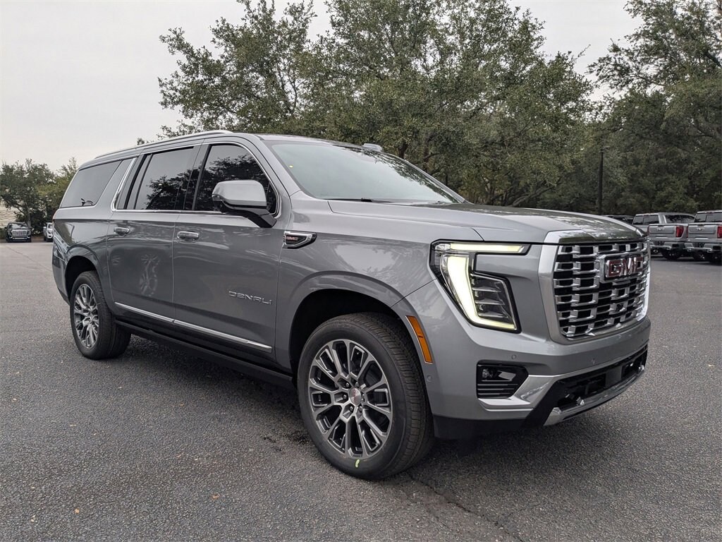 Advanced Security Package (Glass Breakage Sensor, Theft-Deterrent Alarm System, Vehicle Inclination Sensor, and Vehicle Interior Movement Sensor), Advanced Technology Package (3 Years OnStar One, Driver Attention Assist, Inside Rearview Auo-Dimming Rear Camera Mirror, Rear Seat Media System, and Super Cruise), Denali Reserve Package (Dual-Pane Panoramic Power Sunroof and Power-Retractable Assist Steps), Enhanced Trailering Technology Package (Trailer Camera Provisions, Trailering Assist Guidelines, and Wired Auxiliary Trailer Camera), Max Trailering Package (Blind Zone Steering Assist with Trailering, Extra Capacity Cooling System, Hill Descent Control, Hitch View, Integrated Trailer Brake Controller, and Smart Trailer Integration Indicator), Preferred Equipment Group 5SA (15 Diagonal Multi-Color Head-Up Display, 4-Way Power Driver Lumbar Seat Adjuster, 4-Way Power Front Passenger Lumbar Seat Adjuster, AutoSense Hands-Free Power Liftgate, Bright Front and Rear Door Sill Plates, Dual Exhaust System, Galvano Bodyside Moldings, Magnetic Ride Control Suspension, Perforated Heather and Ventilated Driver and Front Passenger Seats, Power Release 2nd Row Bucket Seats, Power Tilt and Telescopic Steering Column, and Wheels: 20 x 9 6-Spoke Polished Aluminum), 4WD, 10 Speakers, 3 Years SiriusXM, 3.23 Rear Axle Ratio, 3rd row seats: split-bench, 4-Wheel Disc Brakes, ABS brakes, Adaptive suspension, Air Conditioning, Air Ride Adaptive Suspension, Alloy wheels, AM/FM radio: SiriusXM with 360L, Apple CarPlay/Android Auto, Audio memory, Auto High-beam Headlights, Auto-dimming door mirrors, Auto-dimming Rear-View mirror, Auto-leveling suspension, Automatic temperature control, Bodyside moldings, Bose 10-Speaker Surround with CenterPoint, Brake assist, Bumpers: body-color, Compass, Delay-off headlights, Driver door bin, Driver vanity mirror, Dual front impact airbags, Dual front side impact airbags, Electronic Stability Control, Emergency communication system: OnStar and GMC connected services capable, Engine Block Heater, Exterior Parking Camera Rear, Four wheel independent suspension, Front anti-roll bar, Front Bucket Seats, Front Center Armrest, Front dual zone A/C, Front fog lights, Front reading lights, Fully automatic headlights, Garage door transmitter, Heads-Up Display, Heated door mirrors, Heated Driver and Front Passenger Seats, Heated front seats, Heated rear seats, Heated steering wheel, Illuminated entry, Low tire pressure warning, Memory seat, Navigation system: GMC Connected Navigation, Occupant sensing airbag, Outside temperature display, Overhead airbag, Overhead console, Panic alarm, Passenger door bin, Passenger vanity mirror, Perforated Leather Seating Surfaces, Power door mirrors, Power driver seat, Power Liftgate, Power passenger seat, Power steering, Power windows, Radio: 16.8 Diagonal Premium GMC Infotainment System, Rain sensing wipers, Rear air conditioning, Rear anti-roll bar, Rear reading lights, Rear window defroster, Rear window wiper, Remote keyless entry, Security system, SiriusXM with 360L, Speed control, Speed-sensing steering, Split folding rear seat, Spoiler, Steering wheel memory, Steering wheel mounted audio controls, Tachometer, Telescoping steering wheel, Tilt steering wheel, Traction control, Trip computer, Turn signal indicator mirrors, Variably intermittent wipers, Ventilated front seats, Voltmeter, Wheel Locks (set of 4), and Wheels: 22 x 9 Ultra-Bright Machined.