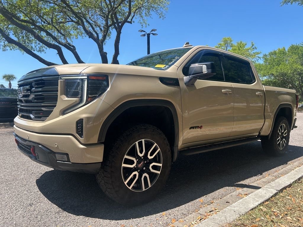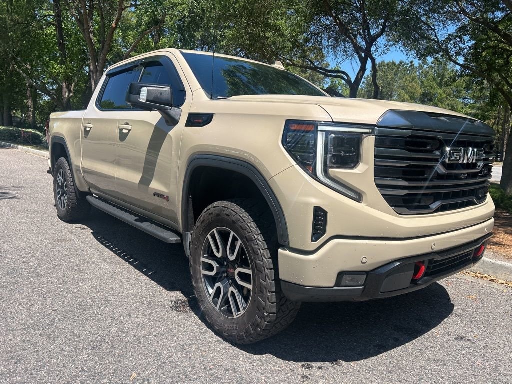 Tires and Leveled. 2022 Sierra 1500 AT4 LOCAL TRADE IN, APPLE CARPLAY, SUNROOF/MOONROOF, LEATHER SEATS, 4X4 FOUR WHEEL DRIVE AWD ALL WHEEL DRIVE, Sierra 1500 AT4, 4D Crew Cab, 3.0L I6, 10-Speed Automatic, 4WD, Desert Sand Metallic, Jet Black With Kalahari Accents Leather, 120-Volt Instrument Panel Power Outlet, 2 Charge/Data USB Ports Inside Center Console, 2 Type-C Charge-Only Rear USB Ports, 2 USB Ports, 220 Amp Alternator, AT4 Preferred Package, AT4 Premium Package, Auto-Locking Rear Differential, Bed View Camera, Black Chrome Header & Grille Insert Bars, Color-Keyed Carpeting Floor Covering, Compass, Deep-Tinted Glass, Electric Rear-Window Defogger, Electrical Steering Column Lock, Floor-Mounted Center Console, Front Prem Floor Liners w/Removable Carpet Insert, Front Rainsensing Wipers, GMC Connected Access Capable, HD Rear Vision Camera, HD Surround Vision, Heated 2nd Row Outboard Seats, Heated Driver & Front Outboard Passenger Seating, Heated Steering Wheel, Heavy-Duty Air Filter, Hill Descent Control, Hitch Guidance, Hitch Guidance w/Hitch View, In-Vehicle Trailering App, Integrated Trailer Brake Controller, Keyless Open & Start, LED Cargo Area Lighting, Multicolor 15 Diagonal Head-Up Display, Off-Road High Clearance Step (LPO), OnStar & GMC Connected Services Capable, Perimeter Lighting, Power Door Locks, Power Front Passenger Windows w/Express Up/Down, Power Front Windows w/Driver Express Up/Down, Power Rake & Telescoping Steering Column, Power Rear Windows w/Express Down, Preferred Equipment Group 4SB, Premium Bose 7-Speaker Sound System, Push Button Start, Rear Camera Mirror, Rear Cross Traffic Braking, Rear Pedestrian Detection, Rear Wheelhouse Liners, Red Recovery Hooks, Remote Vehicle Starter System, Sierra Safety Plus Package, SiriusXM w/360L, Spray-On Pickup Bed Liner w/AT4 Logo, Steering Wheel Audio Controls, Technology Package, Theft Deterrent System (Unauthorized Entry), Trailer Camera Provisions, Trailer Side Blind Zone Alert, Trailering Package, Ultrasonic Front & Rear Park Assist, Ventilated Driver & Front Passenger Seats, Wi-Fi Hotspot Capable, Wireless Charging, Wireless Phone Projection. 4WD Clean CARFAX. 22/26 City/Highway MPG 3.0L I6 10-Speed Automatic
