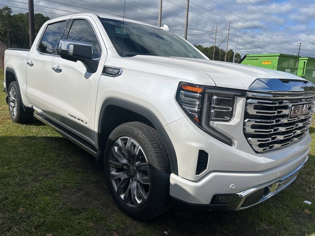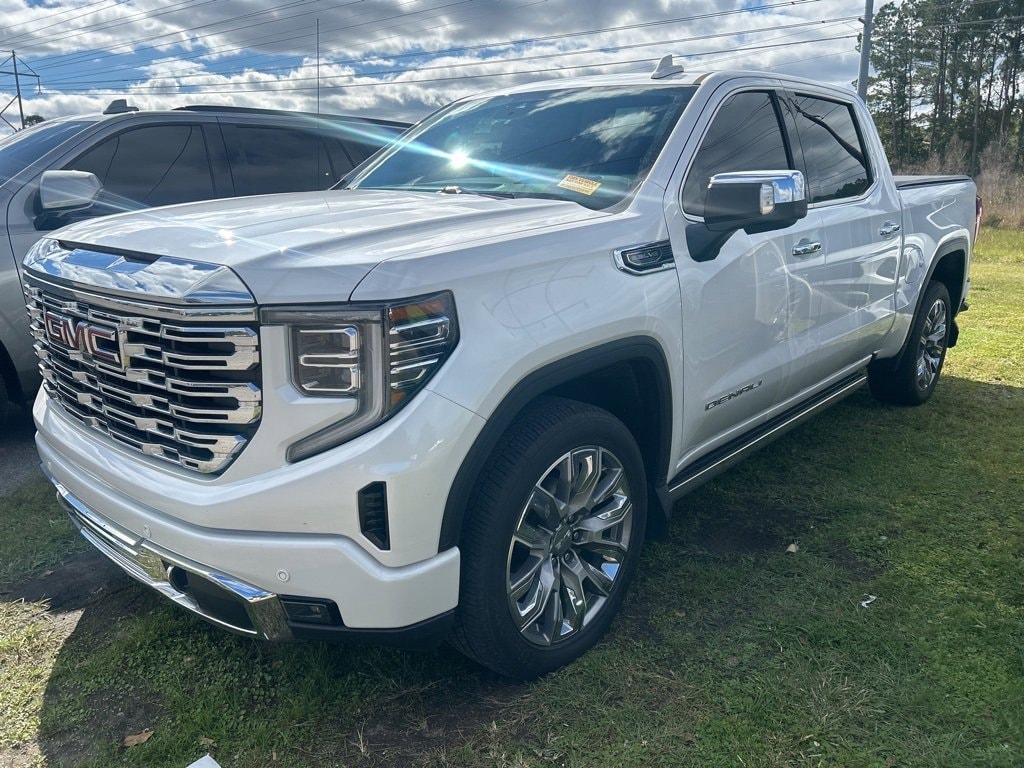 2023 Sierra 1500 Denali LOCAL TRADE IN, APPLE CARPLAY, TECHNOLOGY PACKAGE, CLEAN CARFAX HISTORY, ONE OWNER, SUNROOF/MOONROOF, LEATHER SEATS, 4X4 FOUR WHEEL DRIVE AWD ALL WHEEL DRIVE, ALLOY WHEELS, TOW PACKAGE TRAILER PACKAGE, Asdaptive Cruise, Sierra 1500 Denali, 4D Crew Cab, EcoTec3 5.3L V8, 10-Speed Automatic, 4WD, White Frost Tricoat, Jet Black Leather. CARFAX One-Owner. 4WD Clean CARFAX. EcoTec3 5.3L V8 10-Speed Automatic Odometer is 6624 miles below market average!