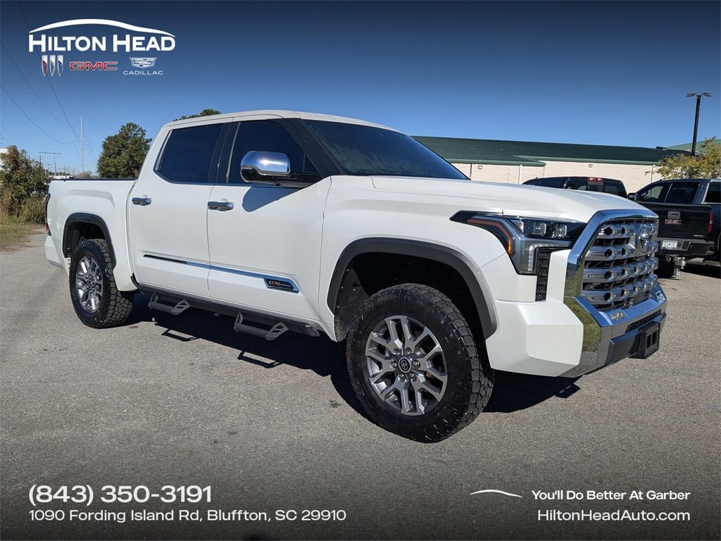 2022 Tundra 1794 LOCAL TRADE IN, CLEAN CARFAX HISTORY, 4X4 FOUR WHEEL DRIVE AWD ALL WHEEL DRIVE, Tundra 1794, 4D CrewMax, 3.4L V6, 10-Speed Automatic, 4WD, Wind Chill Pearl, Saddle Tan Leather. 4WD 3.4L V6 10-Speed Automatic